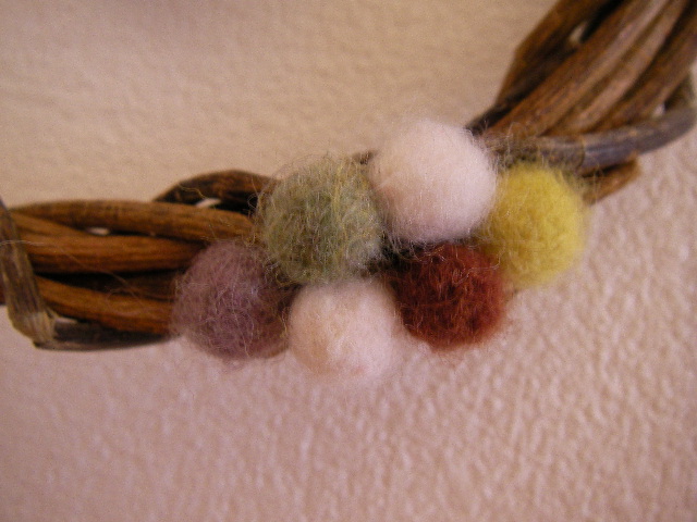 主役のトリさんに合わせて(つもり)羊毛で作ったミニボールと