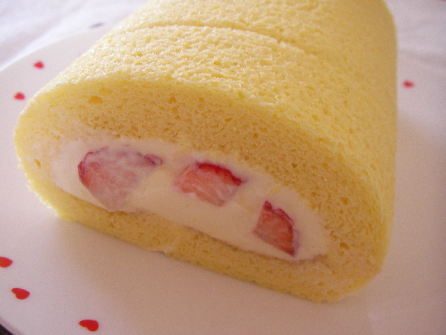 いちごとカスタードクリームがたっぷりのロールケーキです~☆