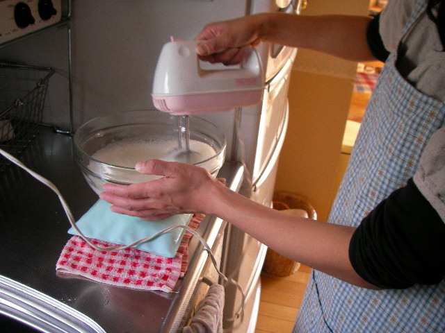 友達が頑張ってメレンゲ作りをしてくれてま~~~す! (*^▽^*)