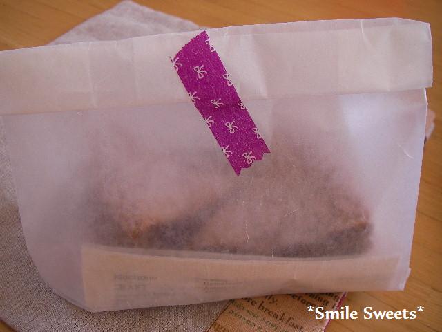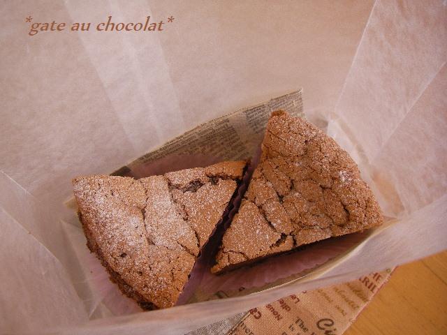 カットしたガトーショコラは ワックスペーパーの袋に入れて。