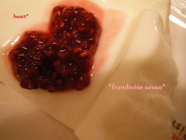 急遽、冷凍ラズベリーを煮てソースを作りました。