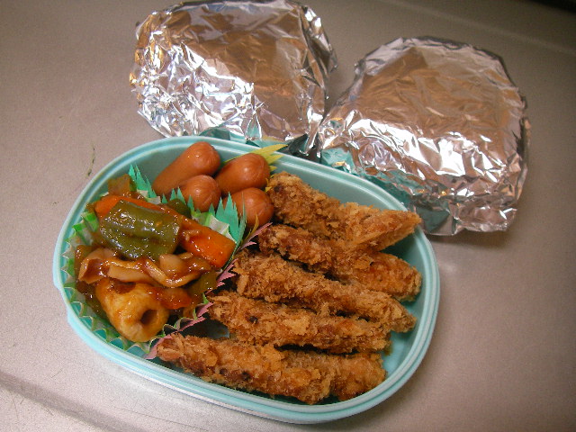 相変わらず茶色が多い弁当で地味だけど、ご勘弁を~。