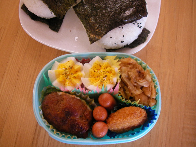 あいかわらず、おにぎりプラスおかずのお弁当作ってますよ~(*^-^)