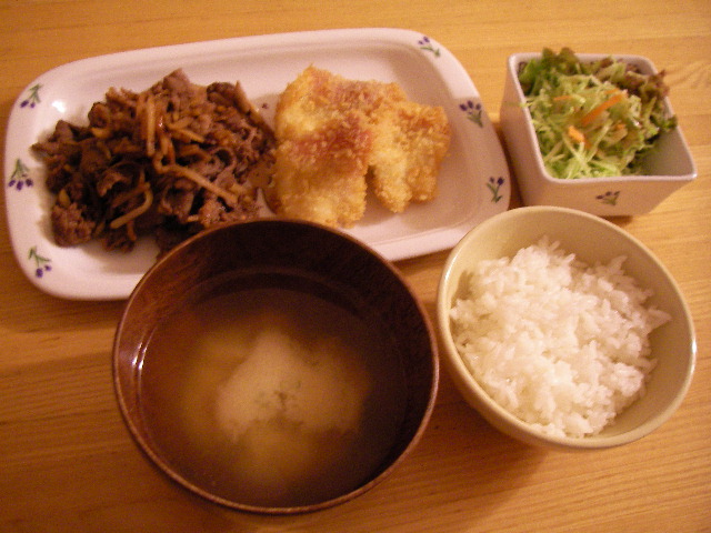 これはパパ作。牛肉と細切りのジャガイモや人参、シメジ