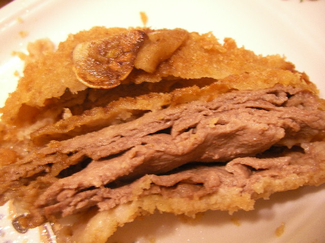 小麦粉はお肉を重ねてからまぶすそうです。1枚1枚にまぶしてしまうと、粉が肉汁を余計に吸ってしまって、ジューシーさが損なわれる・・らしいです!元調理人が言ってるのでたぶん信用できるかと(笑)