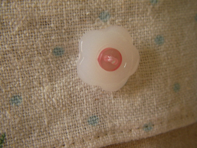 お花ボタンの上に、クリアなピンクのミニボタンを重ねてつけてみたの