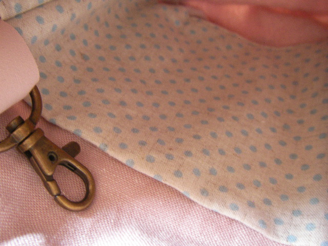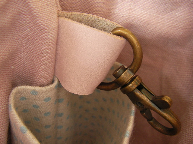 ピンクベージュの革でナスカンをひとつ付けてるよ♪