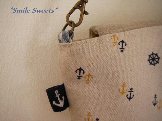 Dカンはネイビーのチェックのバイアステープを通してつけました^^