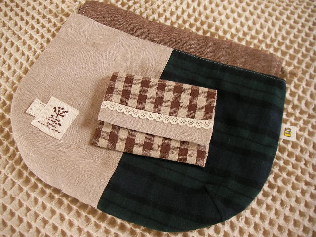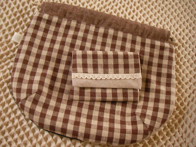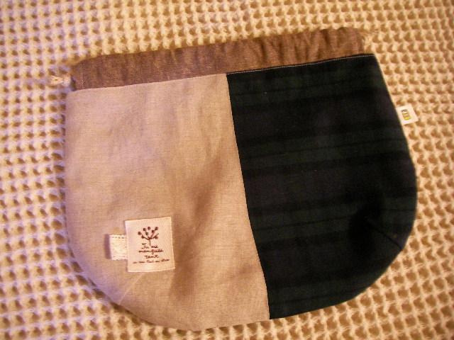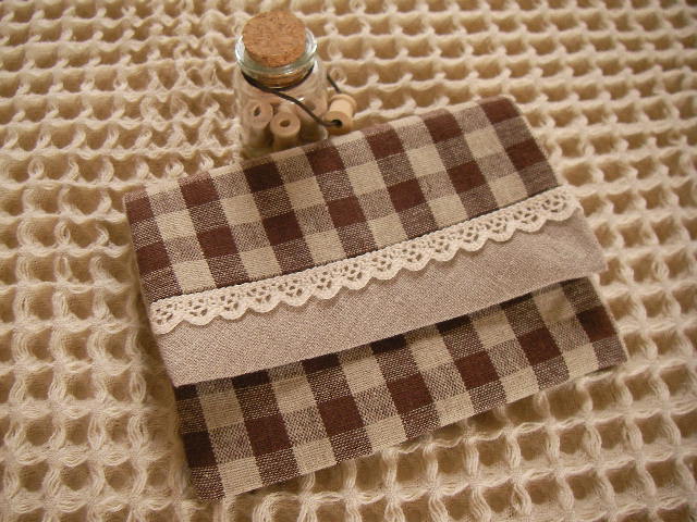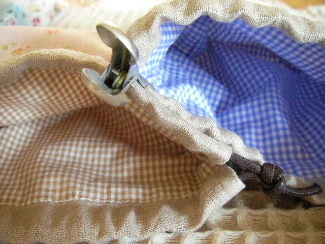 裏(内)布は、カフェオレ色の細かいギンガムチェックにしました。
