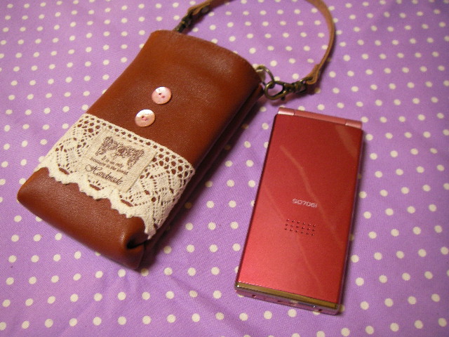 それだけでは寂しい気がしたので、携帯がピンクなのでピンク色の貝ボタンを