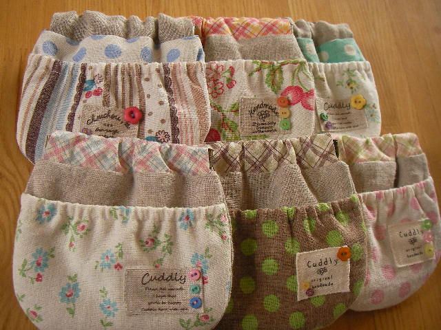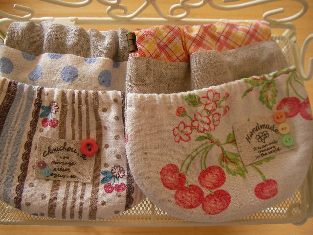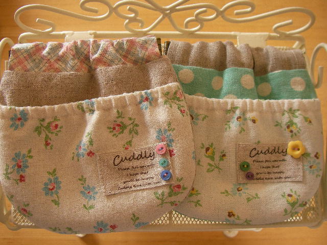 同じものを6個も作ったのって、今までなかったかも~^^でも、好きな柄ばかりなので、作っていても楽しかったよ!ミニボタンも糸の色をかえてチマチマとつけたので、その辺がちょっと時間がかかったかな!?