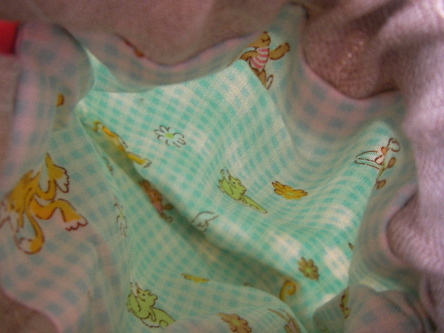 グリーンっぽいみずいろのチェックにキュートな動物ちゃんたちの柄♪
