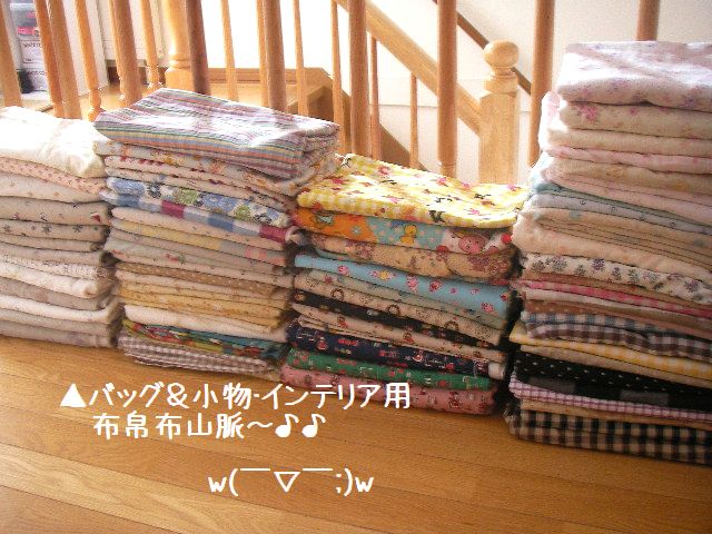 他の方の布って普段見れる機会ってほとんどないから、今回色々なところで見れて楽しいよねっ!!布大量消費隊じゃない方でも、在庫の確認!?戒めのため!?(笑)に布山出してUPされてる方もいるみたいだし^^
