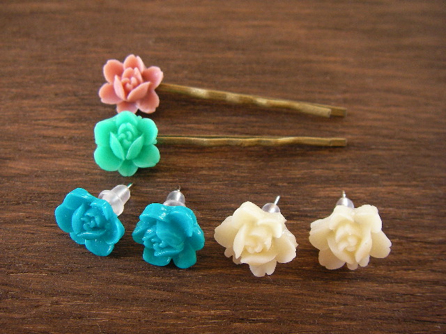 カボションでピアス&ヘアピンを作ってみました