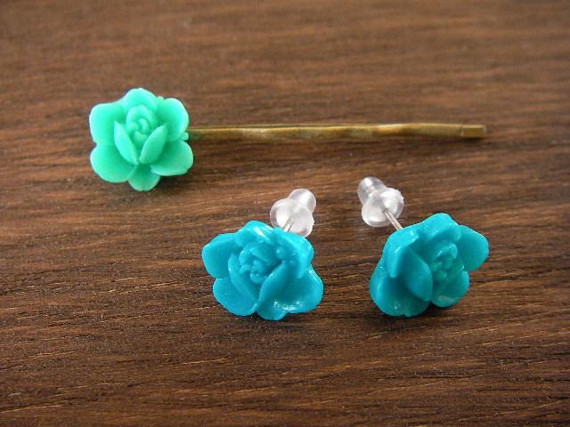 のピアスとエメラルドグリーンのヘアピンのセットです☆