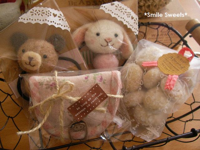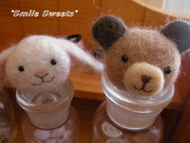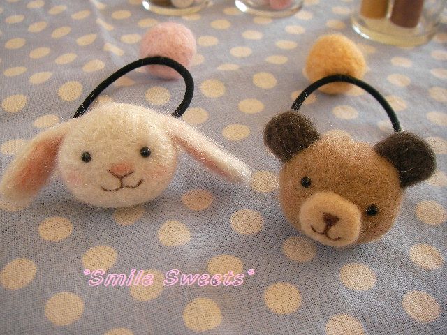 羊毛フェルトのくまちゃんとうさちゃん、かわい~いO(≧▽≦)O