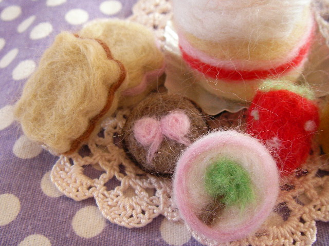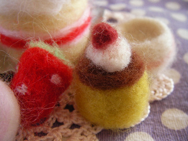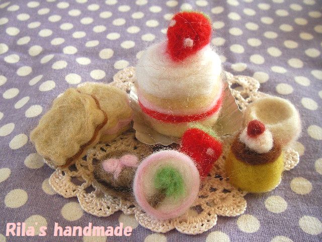 真ん中のいちごのケーキが、一番最初に作ったちくちく作品♪