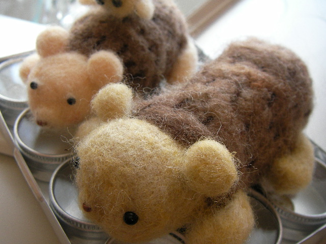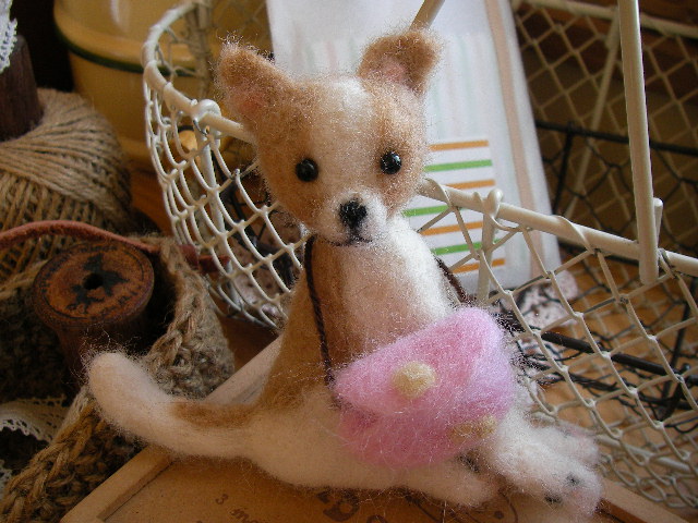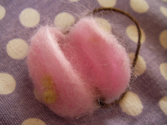 こんな可愛い作品になるなら。。。私の引き出しで眠ってる羊毛フェルト差し上げます!!今度送るから、買わずに待っててね♪結構あるのよ(笑)