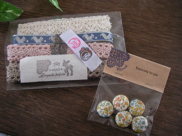 ほかにも、リバティのくるみボタン(贅沢~☆)やレースなど資材も
