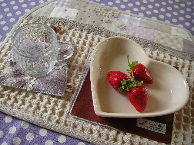 ワッフル仲間♪ということでヒジョーに嬉しかった(*^▽^*) プラス熱さ・冷たさ対策(?)のキルト芯まで一緒だったなんて嬉しい限りですよ~♪そもそも、マットってテーブルを汚さないため・・・ですものね!そこ重要ですよね(笑)