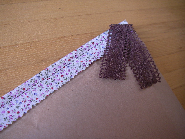 あ、ブラウンのレースをタグ風にはさんだの。これは自分では