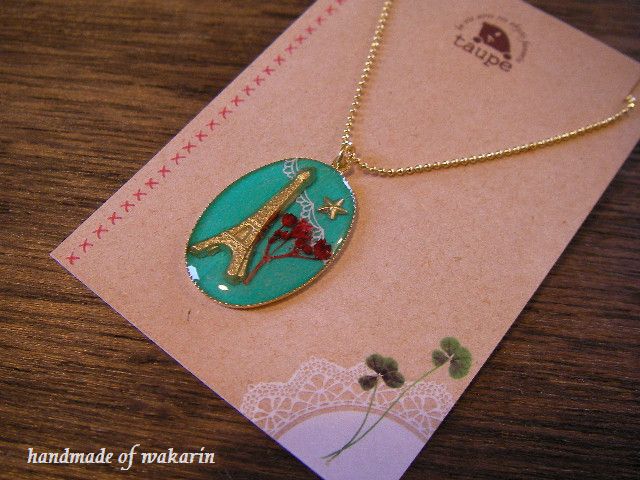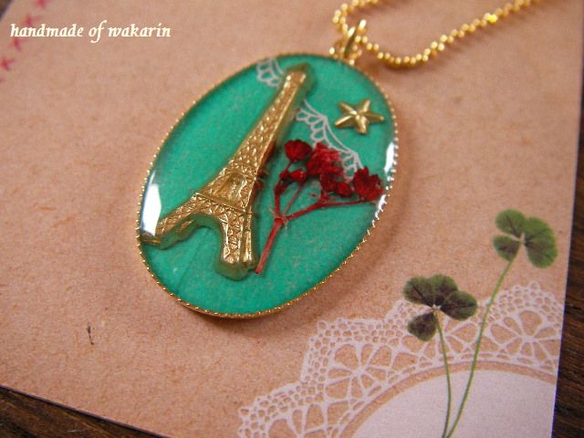 エッフェル塔モチーフがメインでお花があしらわれたネックレス