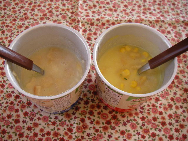 お湯を入れて15秒くるくる~っと混ぜて1分経ったら出来上がりだって。