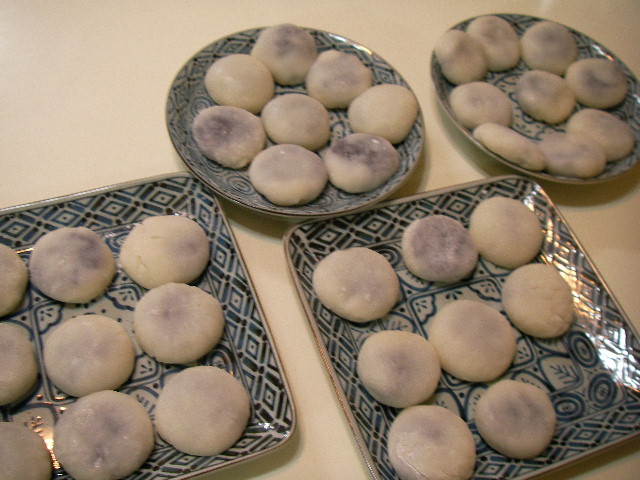 あんこが入ったモチをこの画像よりももっとたくさんみんなで